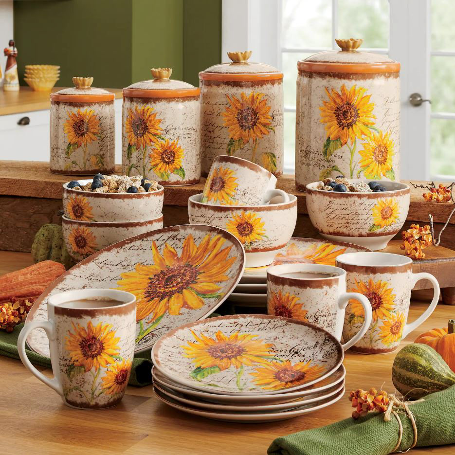 Decal sunflower kitchen design sold in both Country Door and Seventh Avenue.