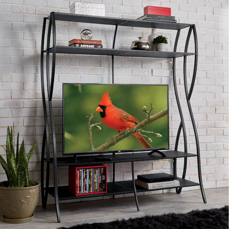 Larger flat pack curved metal entertainment stand to give customers an even larger capacity for televisions.